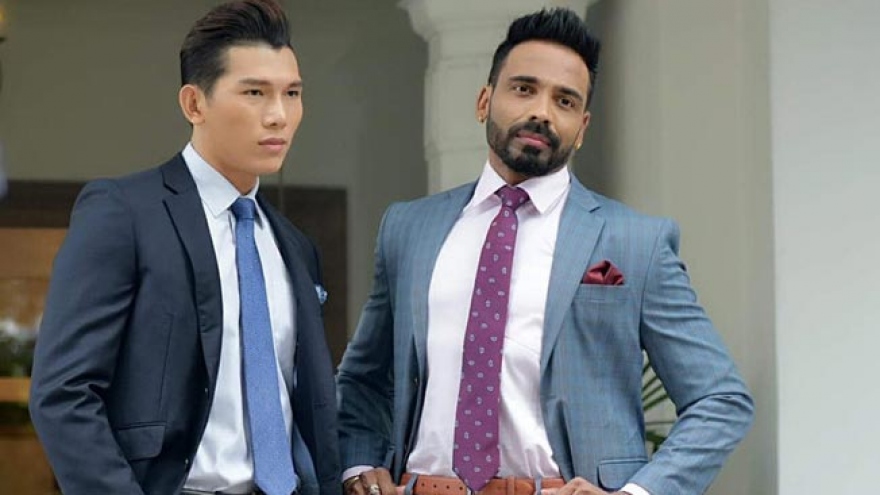 Mister Manhunt International 2017 Ngoc Tinh (second from left), Minh Trung, who finished in the top 5 of Mister International 2018 (fourth from left), and director Nguyen Hung Phuc (centre) also participate in the event. |