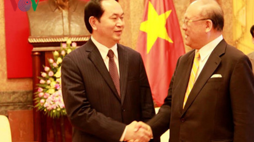 VOV.VN - Secretary of Ho Chi Minh City Party Committee Dinh La Thang hosted a reception on April 22 for Tsutomu Takebe, special advisor to the Japan-Vietnam Friendship Parliamentary Alliance, and some Japanese business leaders.