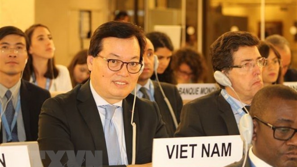 Following the plenary session, Deputy PM Minh and Ambassador Duong Chi Dung – head of the Vietnam Permanent Mission to the UN, the WTO, and other international organisations in Geneva – attended a retreat on the world’s situation.