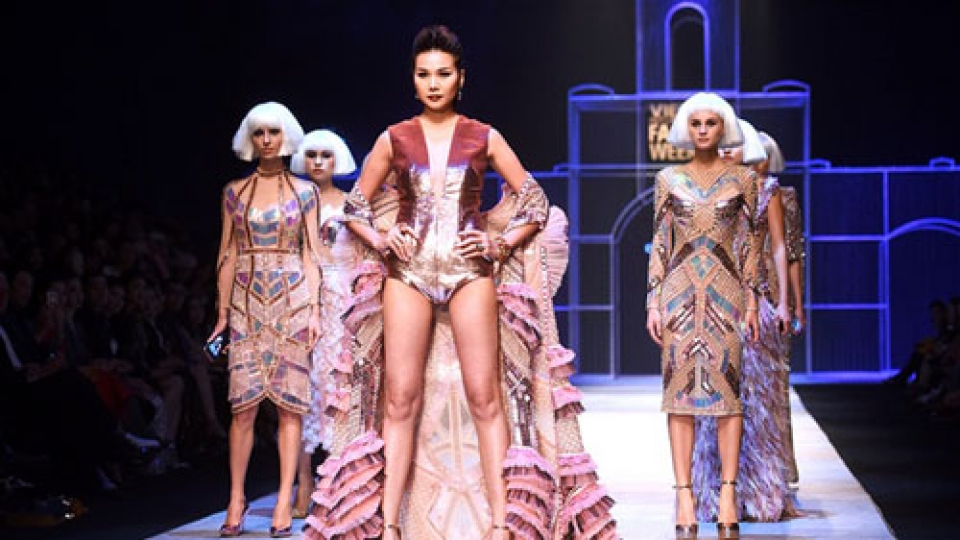 VOV.VN - Winner of Vietnam’s Next Top Model 2011 Hoang Thuy left a deep impression on local and foreign audiences at the Vietnam Int’l Fashion Week, held in Hanoi on November 3.