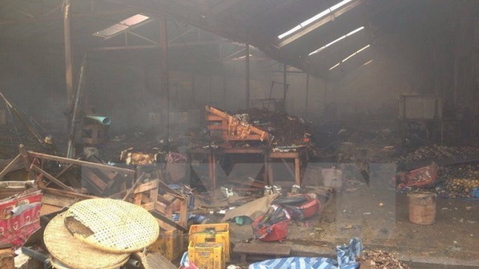 The industrial plant in the province of Thanh Hoa is completely engulfed by flames when firefighters respond just after 3:00 pm. |