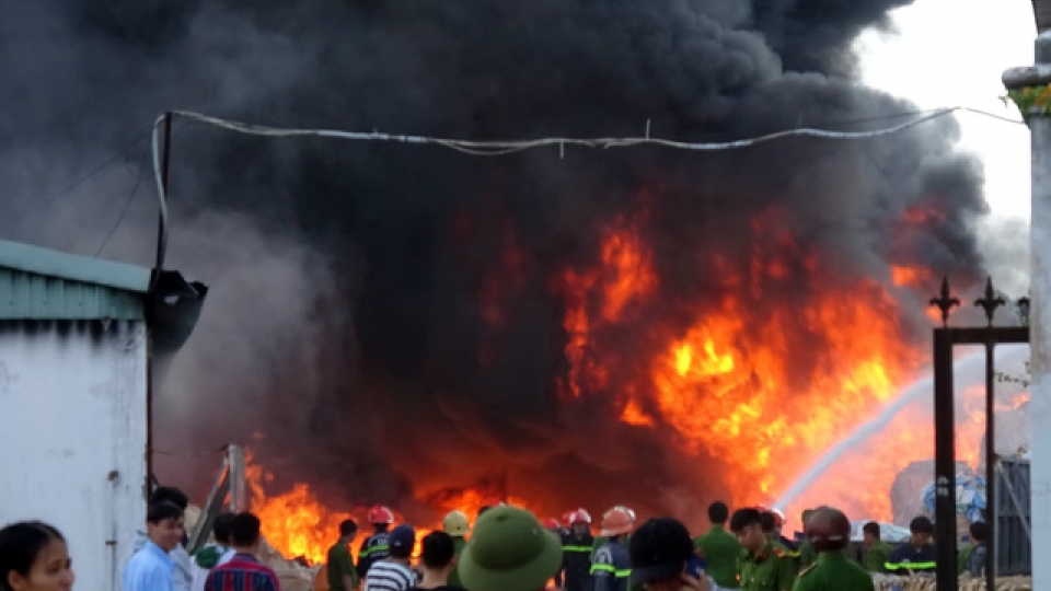 Smoke and flames swirl up from the site of fire. |