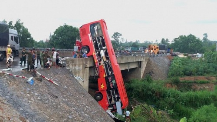 Eyewitnesses say the driver of the bus carrying 22 passengers was southbound when it crashed into the billboard and careered into an oncoming truck and motorbikes. |
