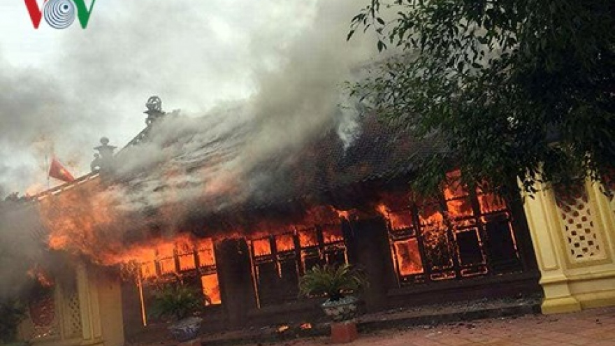 The fire destroys the whole house, sending smoke swirling into the sky, showing a widespread trend to nearby houses. |