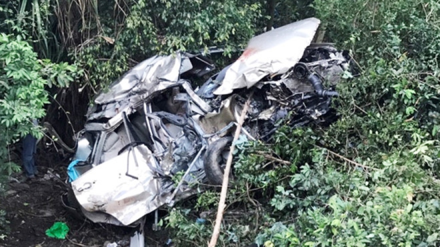 The victim was identified as a local male, 35, who police said was killed instantly when his truck was rear ended by the bus and forced off the highway into a 10-metre ravine at approximately 10am in the morning.