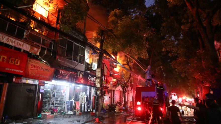 At least six buildings were engulfed in massive fire that spread from a house on De La Thanh Street in Dong Da District on September 17 night.