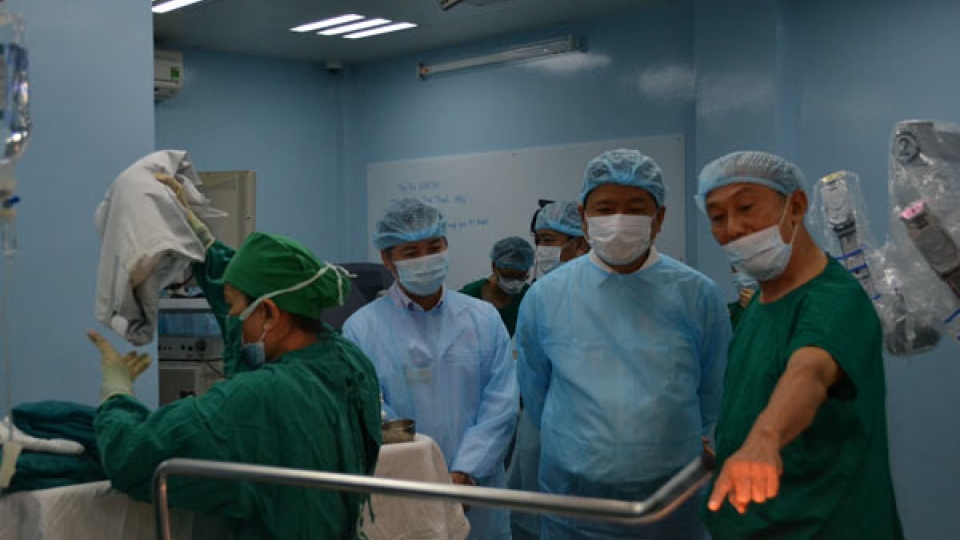 Medics deemed the woman’s condition too critical for transport and quickly requested backup from Thai Binh Maternity Hospital for an on-site surgery.